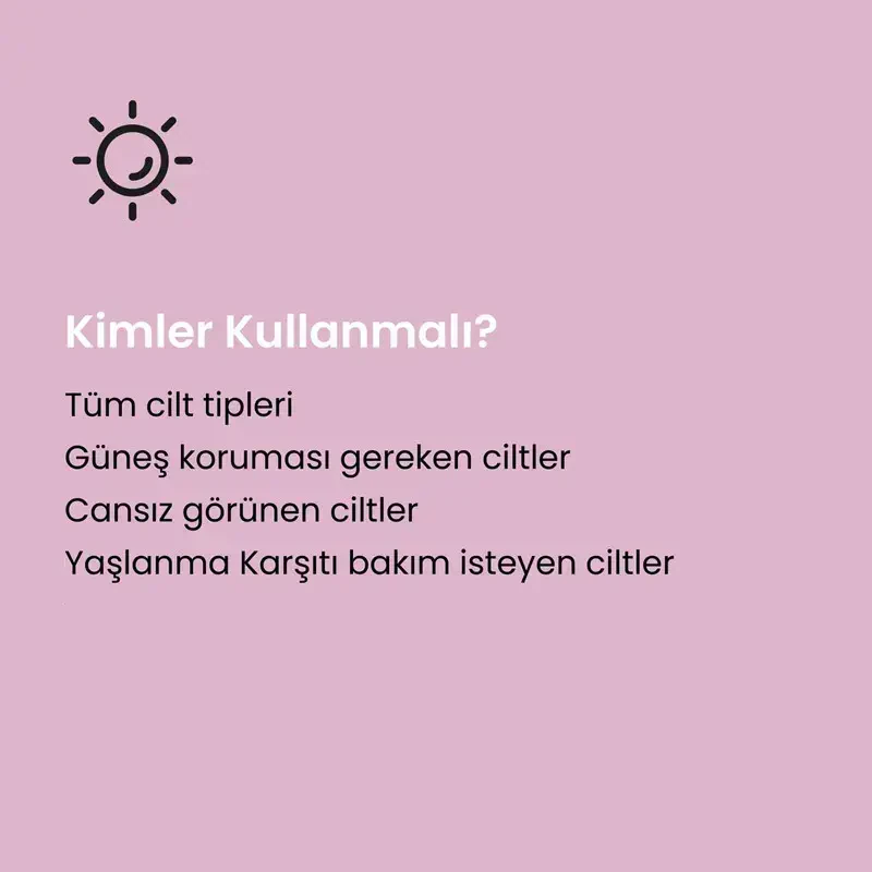 Güneşe bağlı oluşabilecek cilt lekelerine karşı koruma sağlamaya yardımcı olur. Cildi UVA ve UVB ışınlarına karşı korurken, nemlendirici ve aydınlatıcı etkisiyle bakım yapar.