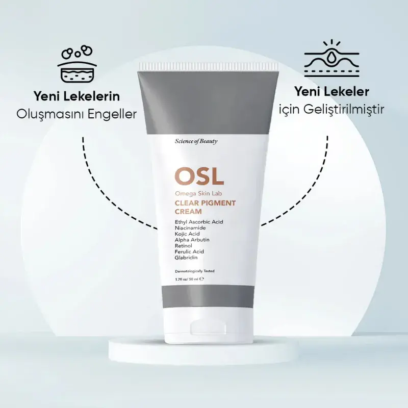 Gelince Haber VerOSL Omega Skin Lab Clear Pigment Cream 50 ml, ciltte oluşan leke görünümünü azaltmaya ve cilt tonunu eşitlemeye yardımcı olan bakım kremidir.