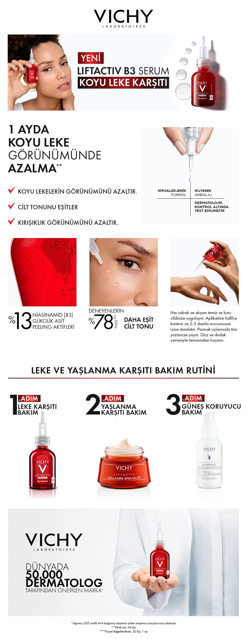 Vichy Liftactiv Specialist B3 Serum, cildin yaşlanma belirtilerine karşı etkili bir çözüm sunar. Cildinizi nemlendirmeye, sıkılaştırmaya ve cilt tonunu eşitlemeye destek olur. Ayrıca cilt bariyerini güçlendirerek cildin daha sağlıklı ve genç görünmesine yardımcı olur.
